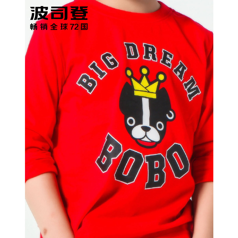 波司登BOSIDENG 男童女童儿童款卡通印花长袖圆领T恤 红色 160100