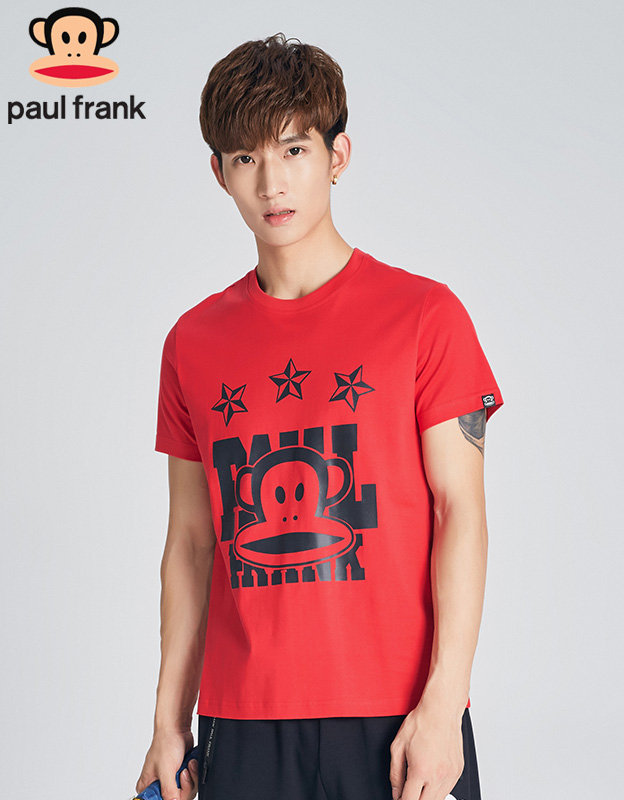 Paul Frank大嘴猴男式休闲圆领印花短袖T恤 男运动短T 潮 R0红色 XL