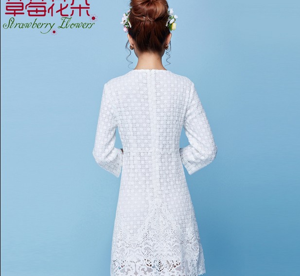 2016韩版新品 女装绣花钉珠七分袖连衣裙女士打底A字裙子