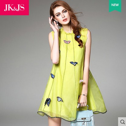 2016新款女装小清新绣花白色欧根纱无袖连衣裙短裙子夏宽松蓬蓬裙
