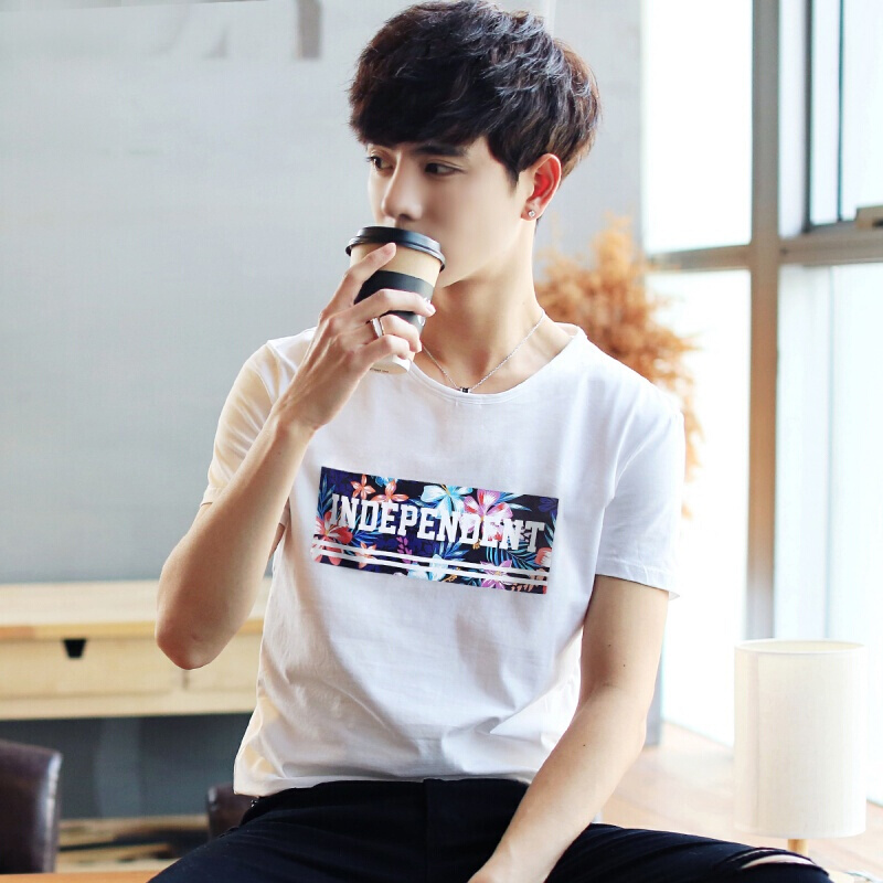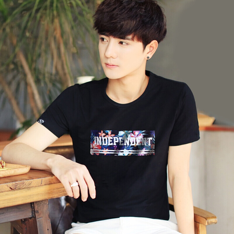 BOY GXG2018夏季新款男士短袖T恤韩版圆领打底衫潮流体恤修身男装上衣服 276黑色 M
