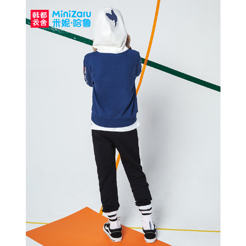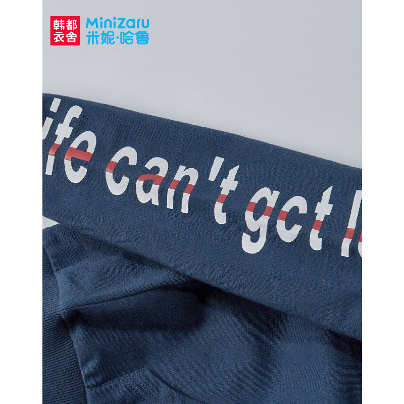 韩都衣舍MiniZaru 米妮哈鲁童装男童韩版儿童中大童休闲两件套时尚套装 藏蓝色 130