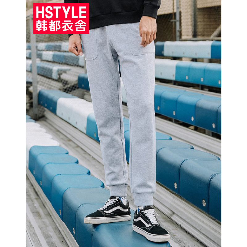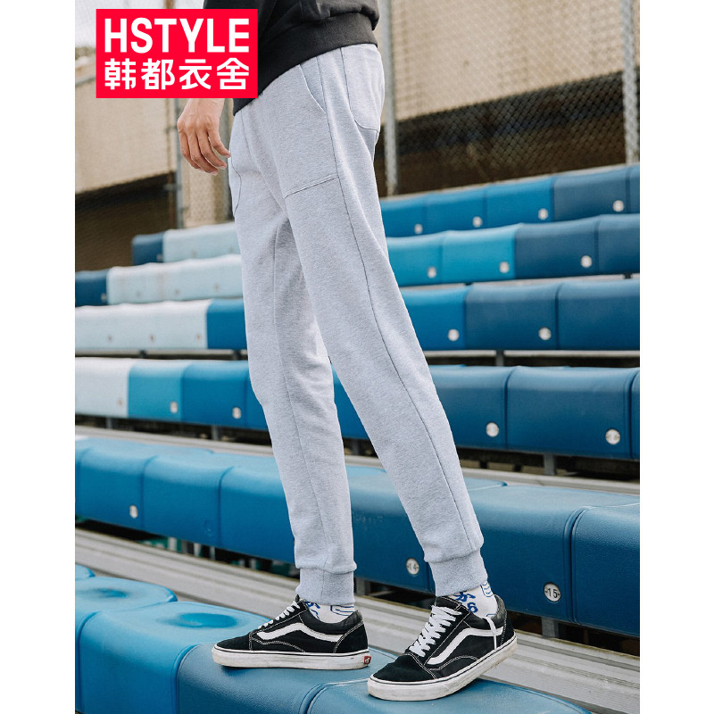韩都衣舍HSTYLE 2018夏季新款韩版修身小脚束脚裤运动裤男士休闲裤 浅灰色 30(M)