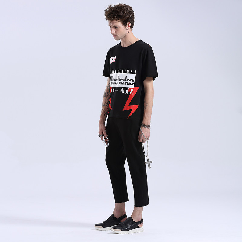 马克华菲型格Reshake男短袖t恤修身圆领印花休闲潮3162216043 黑色 180XL