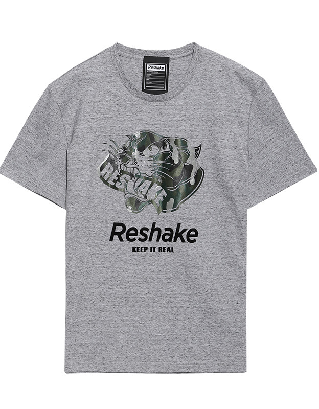 商场同款马克华菲潮牌Reshake2017夏季新品休闲圆领迷彩印花短袖t恤上衣男潮 264浅花灰 1