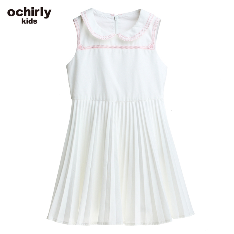 【亲】ochirly kids欧时力童装女童刺绣领拼接百褶连衣裙5G02088050 米白010 1