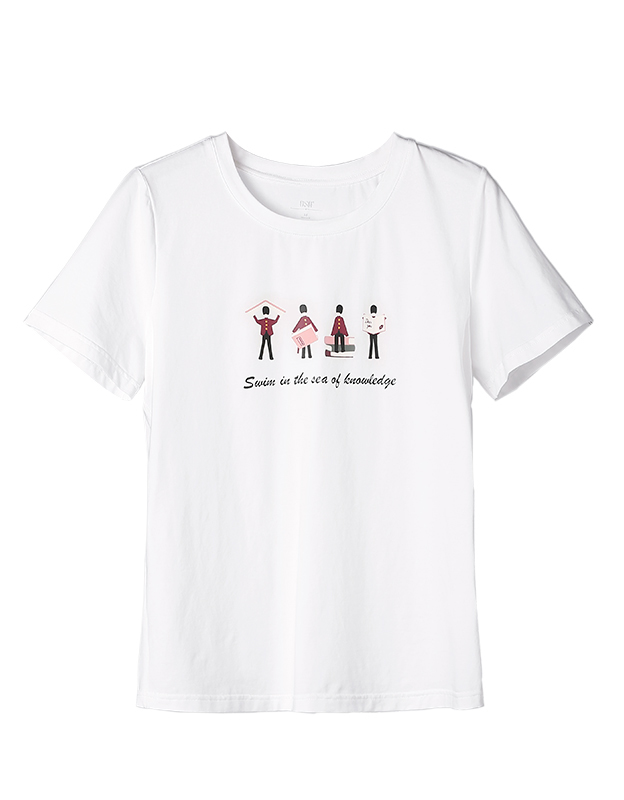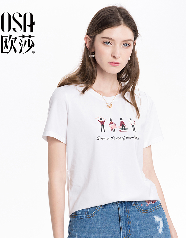 OSA欧莎2018夏装新款女装 简约印花短袖T恤女B11048 白色 M
