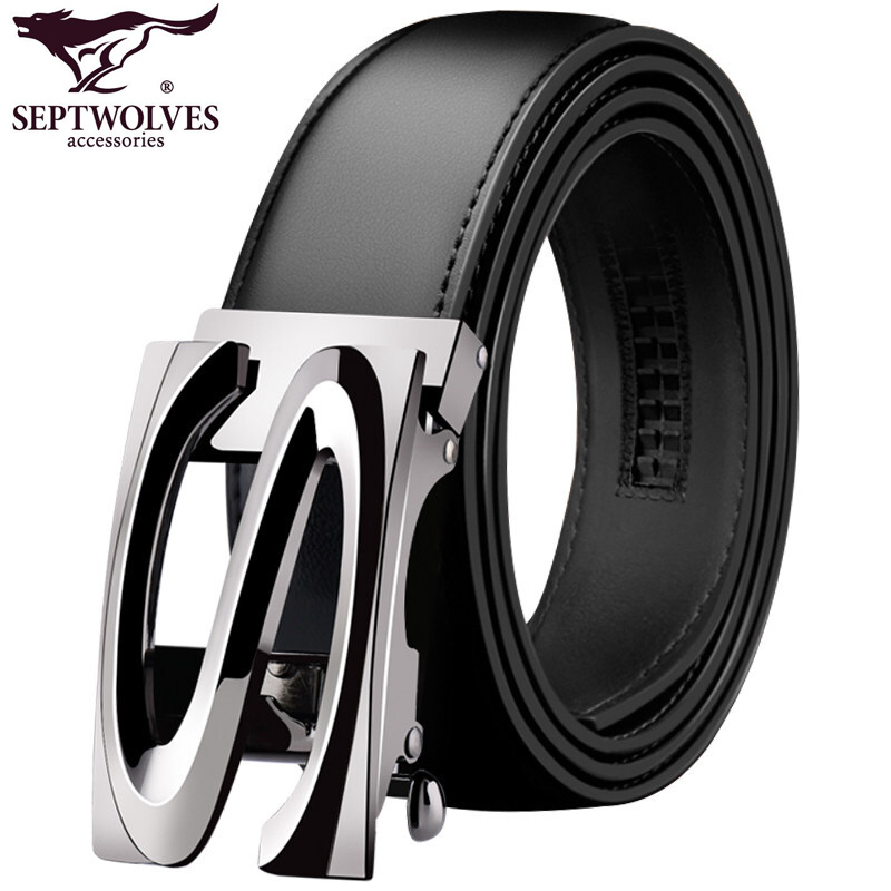 七匹狼皮带男士真皮自动扣腰带青少年S扣个性百搭裤带 单条皮带黑色