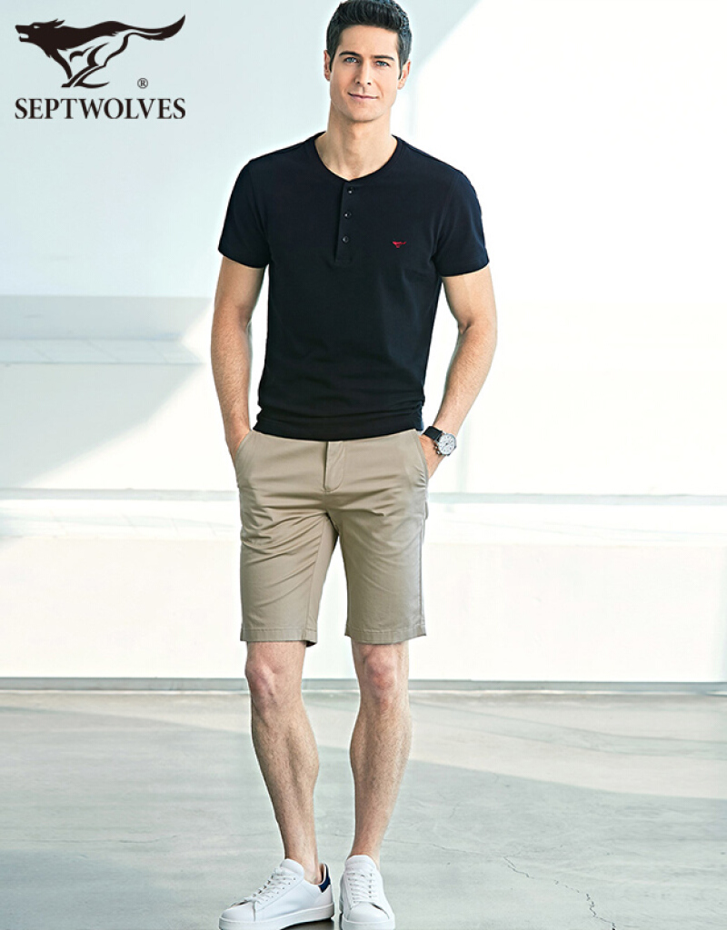 七匹狼短袖T恤男 2018夏季新款男士纯棉圆领T恤男装休闲半袖潮流体恤衫男式亨利领上衣 001黑色