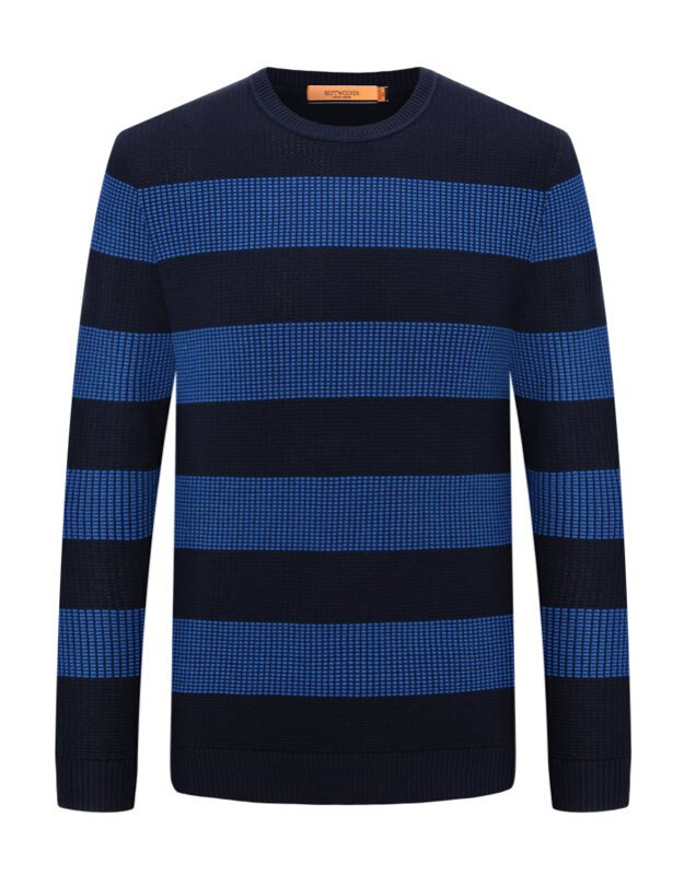 【新品】七匹狼线衫 秋季新品 中青年男士时尚休闲纯棉条纹圆领长袖线衫 108(浅紫蓝) 17592A