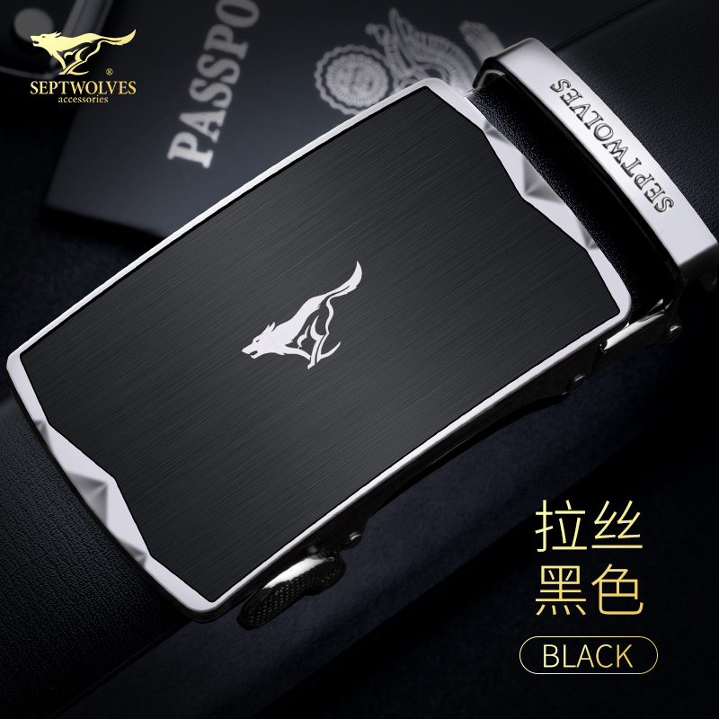 七匹狼皮带男 自动扣牛皮男士皮带商务系列男士腰带裤带7A713404000-06黑色