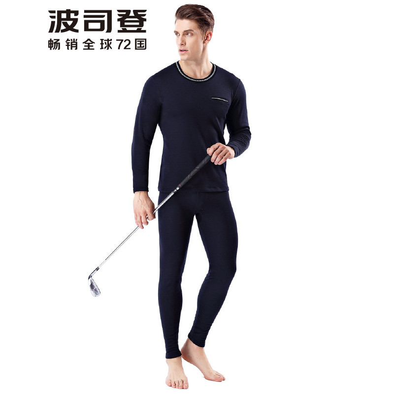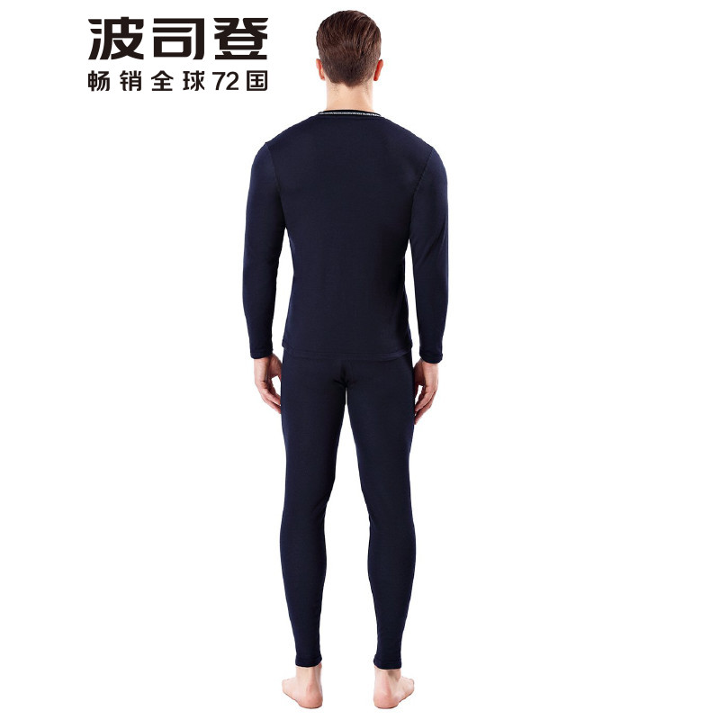 波司登BOSIDENG 羊毛竹炭休闲时尚加绒加厚保暖内衣套装 藏青色 L