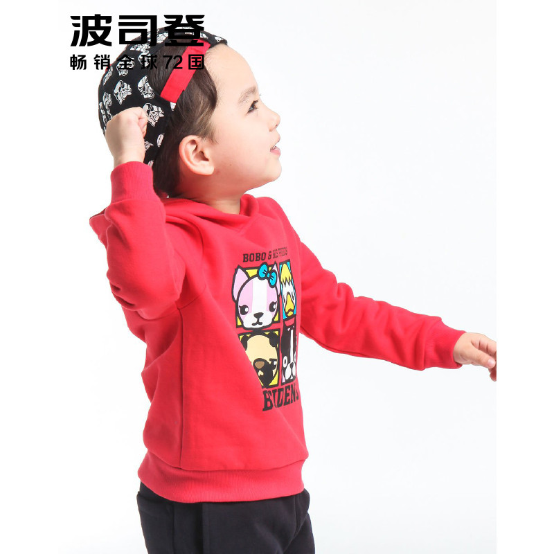 波司登BOSIDENG 男童女童儿童款连帽卡通印花含绒卫衣 新朝阳红 160100